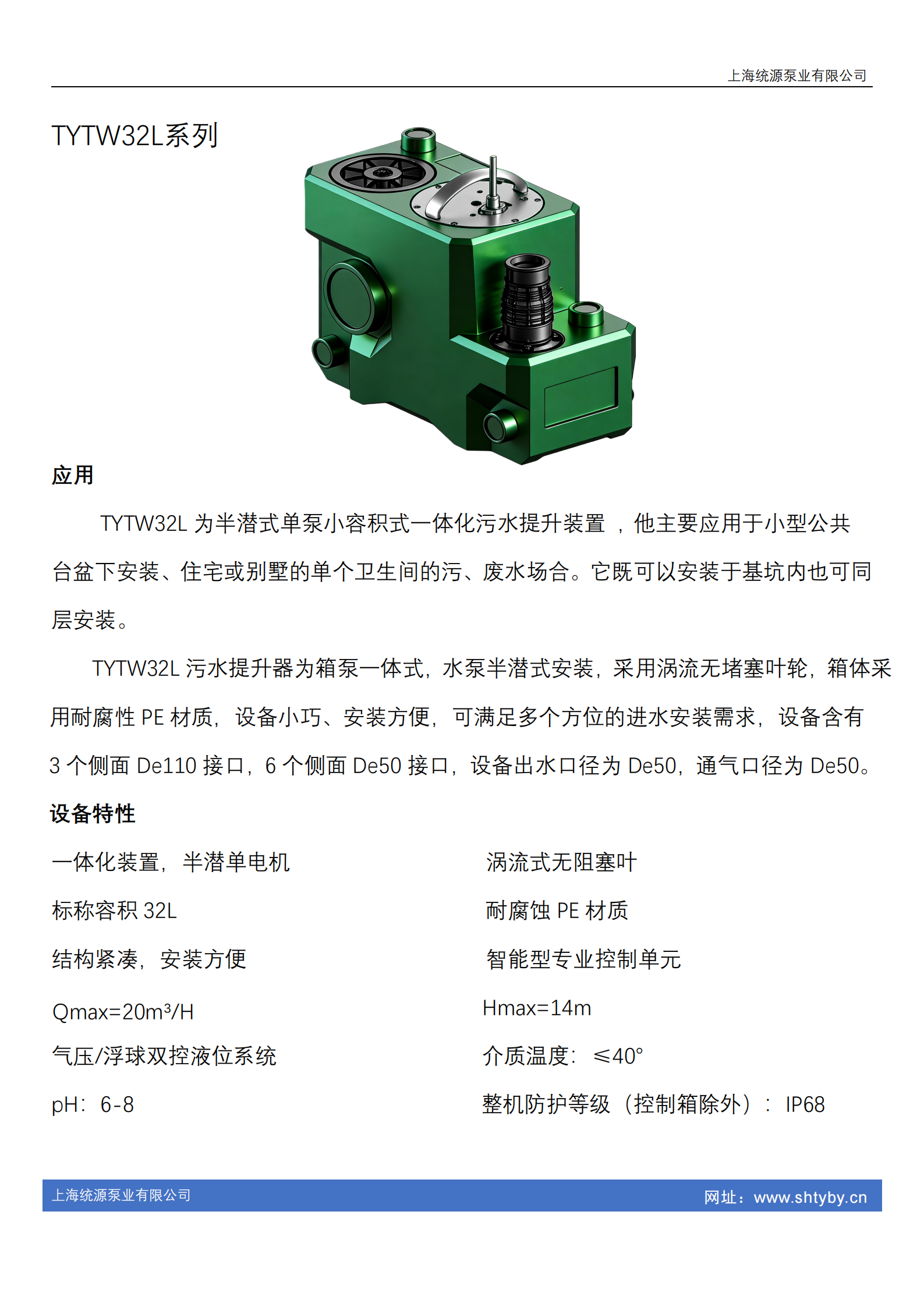 上海统源泵业有限公司成立于2018年,是一家扎根上海、辐射全国的专业流体输送设备与环保设备研发、制造、销售一体化企业,专注于各类污水提升设备的深耕细作,尤其在半潜式地下室污水提升器领域具备成熟的技术实力与生产能力,为地下室等低地势区域污水排放难题提供高效解决方案。